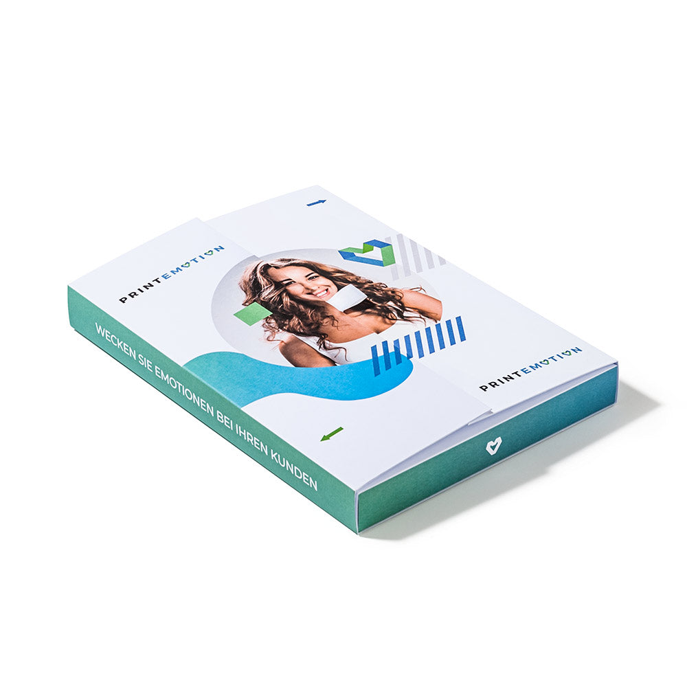 Das können wir sehr gut verstehen! Deshalb haben wir genau hierfür unsere PRINT EMOTION Musterbox zusammengestellt. Hierin finden Sie unsere aktuellen PRINT EMOTION Effektkarten, entweder mit unserem Print Emotion Brand oder als neutrale Agenturversion. Die Agenturversion ist ideal, um Ihren Kunden die Vielfalt unserer Effektkarten zu demonstrieren, ohne, dass Print Emotion als Shop offensichtlich wird. So können Sie als Servicedienstleister für Ihren Kunden bestellen.